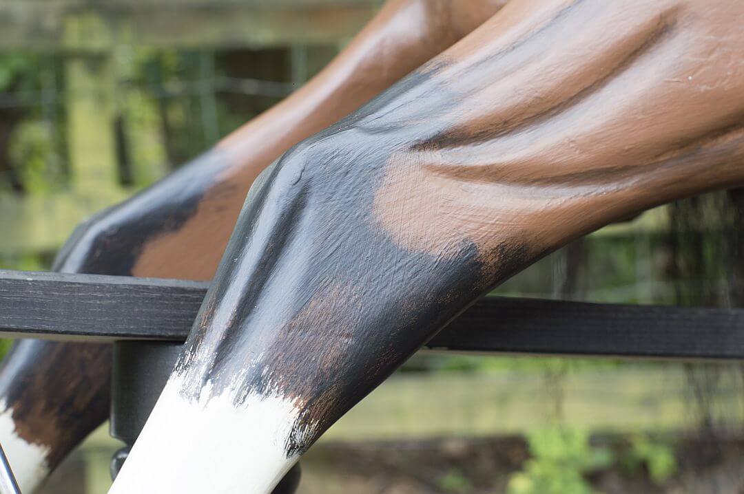 Once we are happy with the painting and after the surface has been sealed, we then add gentle antique waxing to impart a slightly aged mellow feel to the horse.