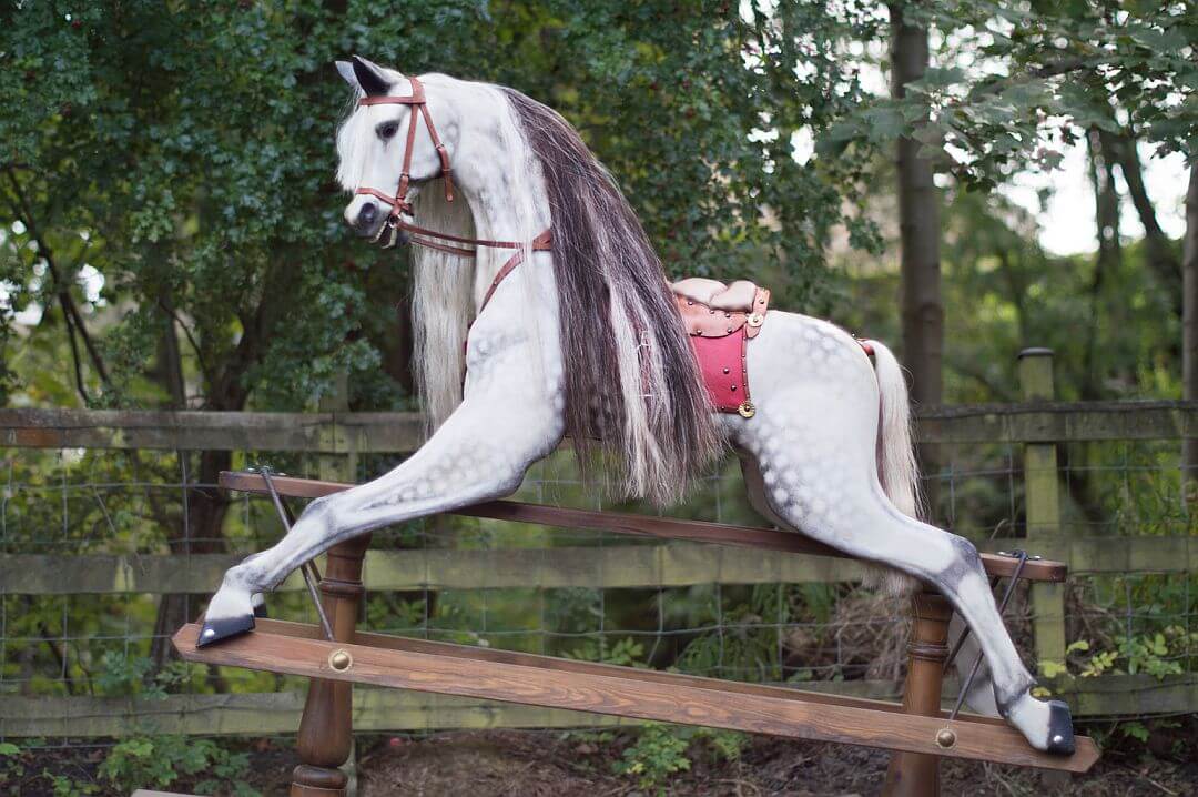 It can be painted as a coloured or a dapple horse – and fitted with a traditional nail on saddle or a removable one.