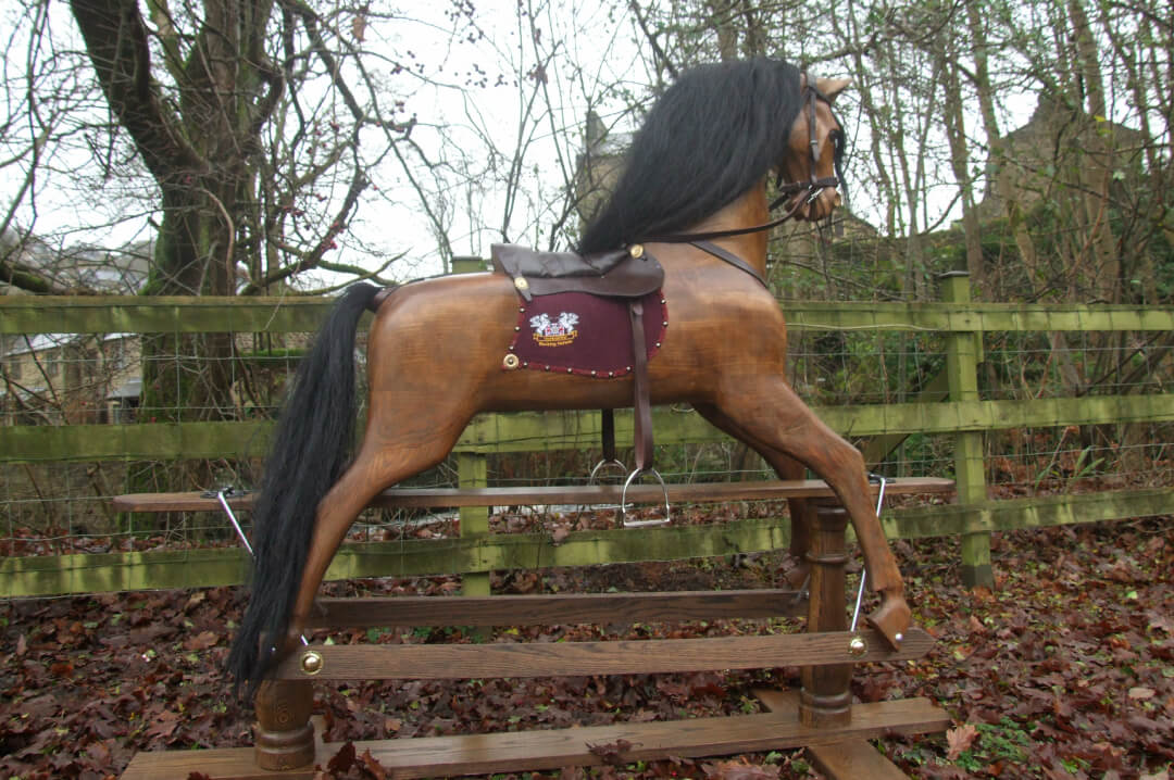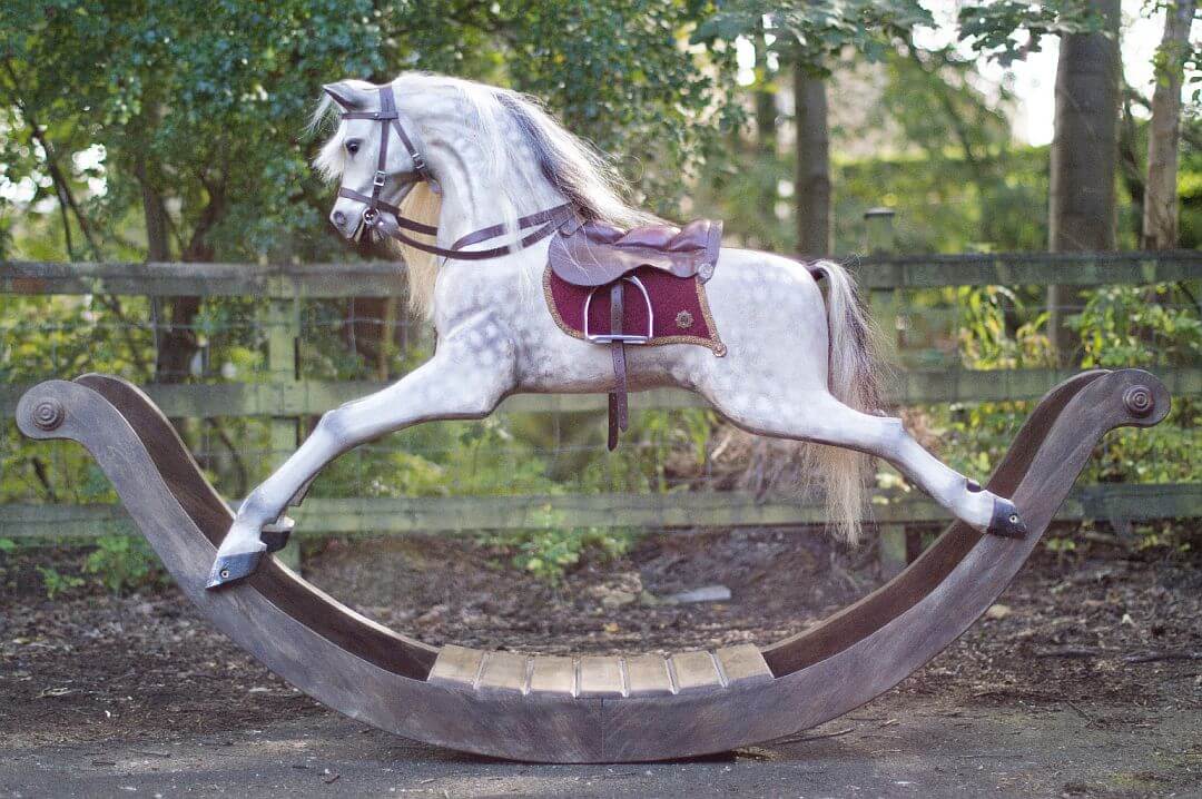 Many of our handmade rocking horses are available in a choice of size options – from 36″ (92 cm) to 60″ (152 cm) high. You can find the full list of options here on our Sizes and Prices page.