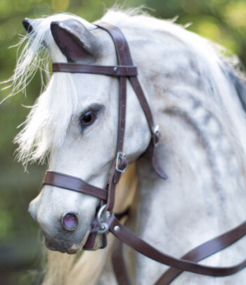 Removable hand-stitched matching bridle and Fulmer bits come as standard. Hair colours are grey, honey, browns and black.