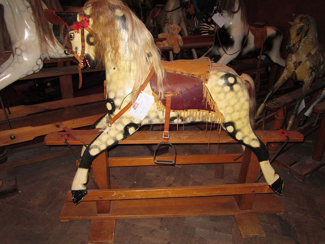 The saddle will perhaps be missing but here we keep original patterns of all saddles fitted to the various rocking horses – a very big variety.