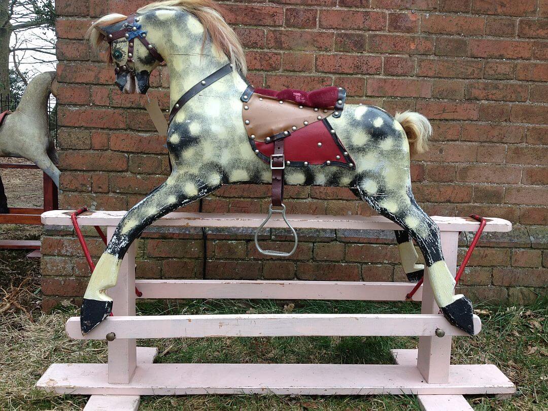 More commonly a rocking horse is in a very poor state, broken legs missing jaw loose neck, no mane or tail and the saddle non-existent.